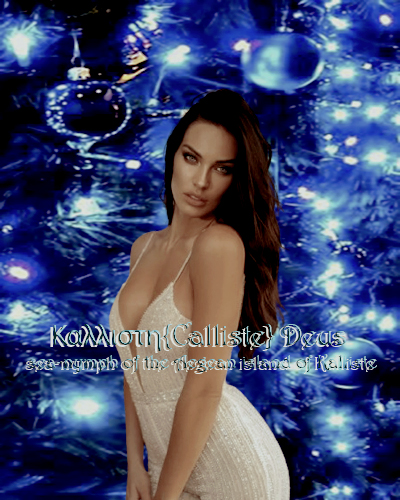 Καλλιστη{Calliste} Deus {sea-nymph of the Aegean island of Kalliste }{Wife of Euphemus}{ Daughter of Triton and Libya}{Sister of Pallas, Triteia, +The Tritonis}{Ancient Deities}
