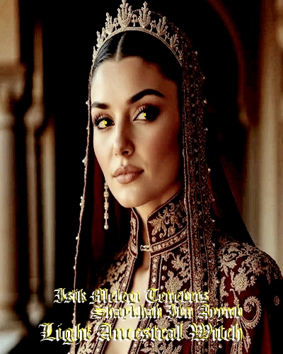 Isik Melegi Tenebris{Shaykhah Ibn Ayyub}{Aurelius Antoninus}{Light Ancestrial Witch}{Wife to Sheik Murat Ibn Ayyub}{Mother to Valentina}{Twin sister to Athlia}{Sister to Antigone,Boudicca, Lydia, Osman}{ Aunt to Isis,Devran,Malantha}{Ut in Veteribus